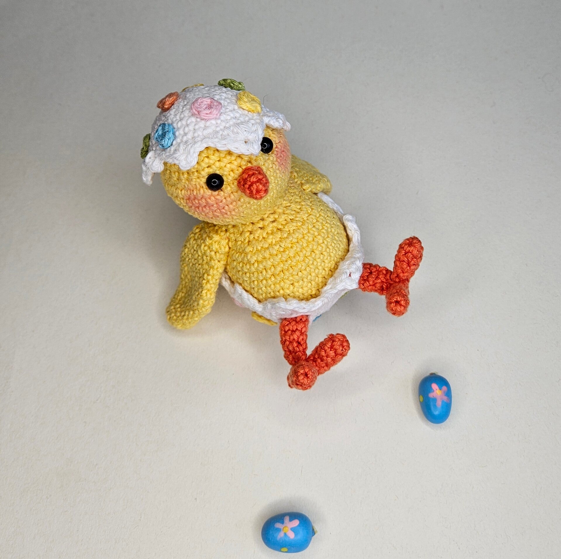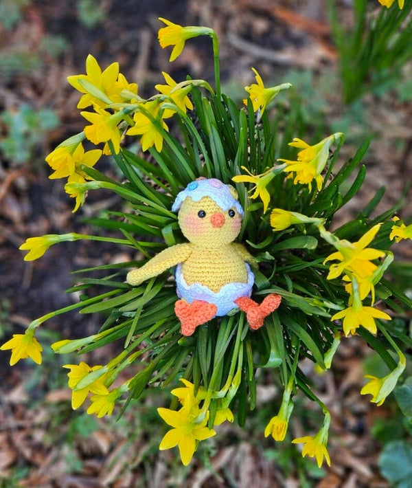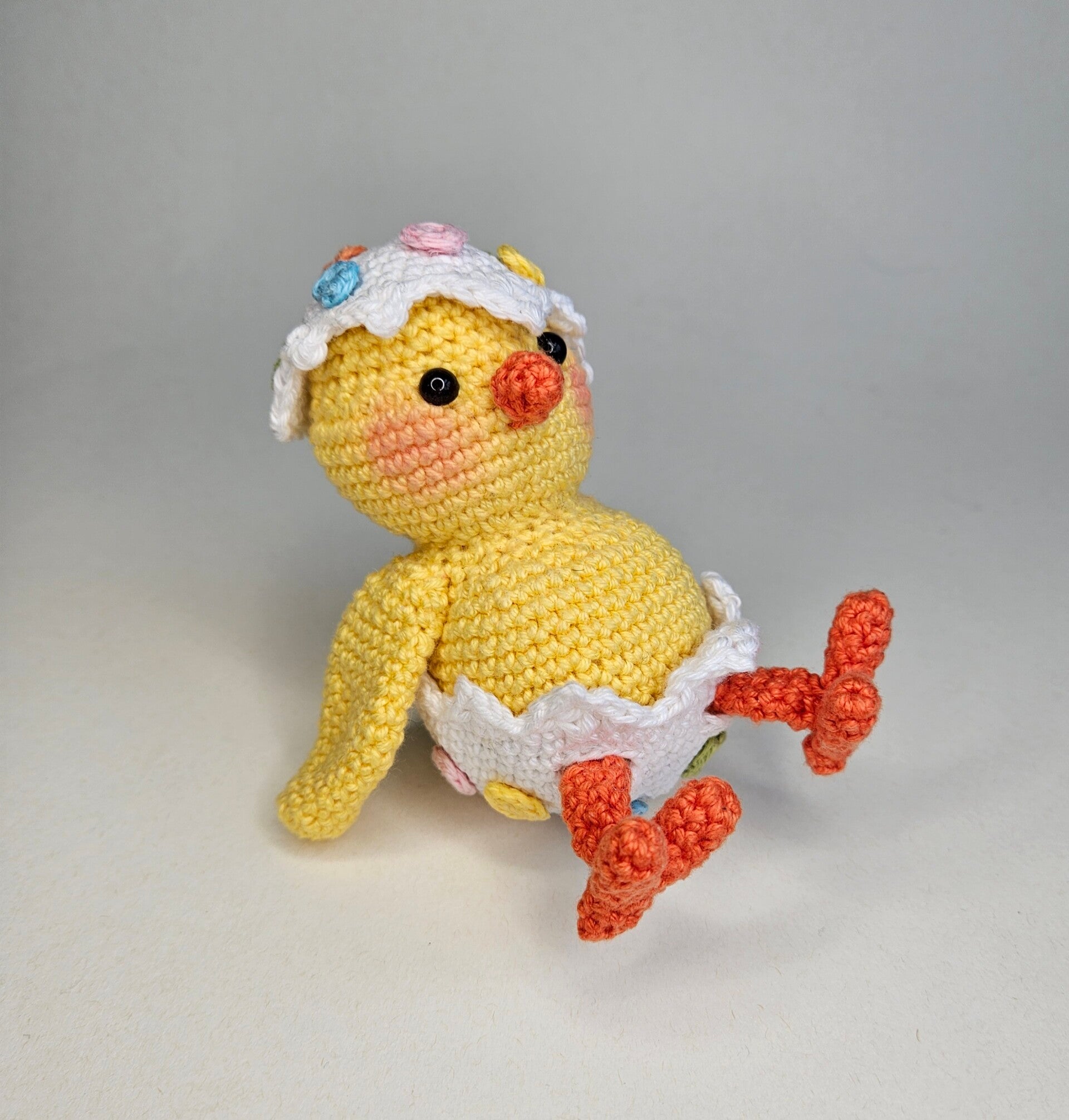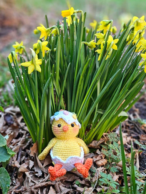 Dit lieve kuikentje is gehaakt met Durable Coral. Hij wordt met dit garen en haaknaald 2mm ca. 10cm groot.