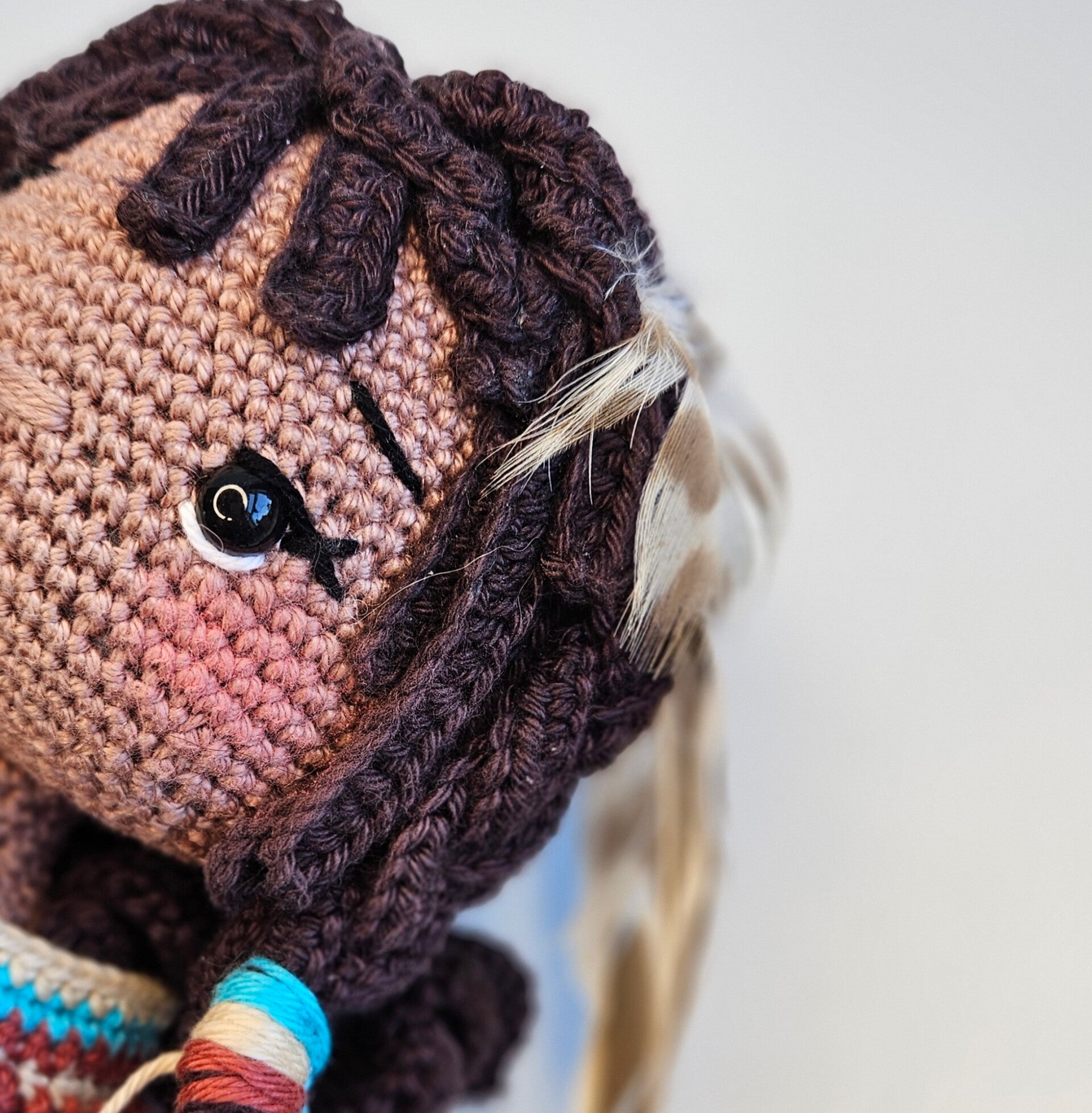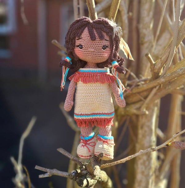 Ze is gehaakt met Durable Coral en wordt met dit garen en haaknaald 2mm ca. 28cm groot.